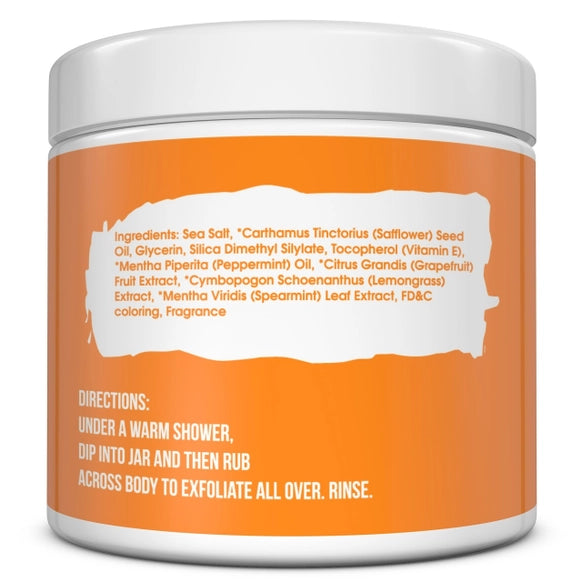 Ingredients: natural sea salt, almond oil, high oleic safflower oil, high oleic sunflower oil, grapeseed oil, apricot kernel oil, avocado oil, dead sea salt, fragrance, and natural vitamin e.