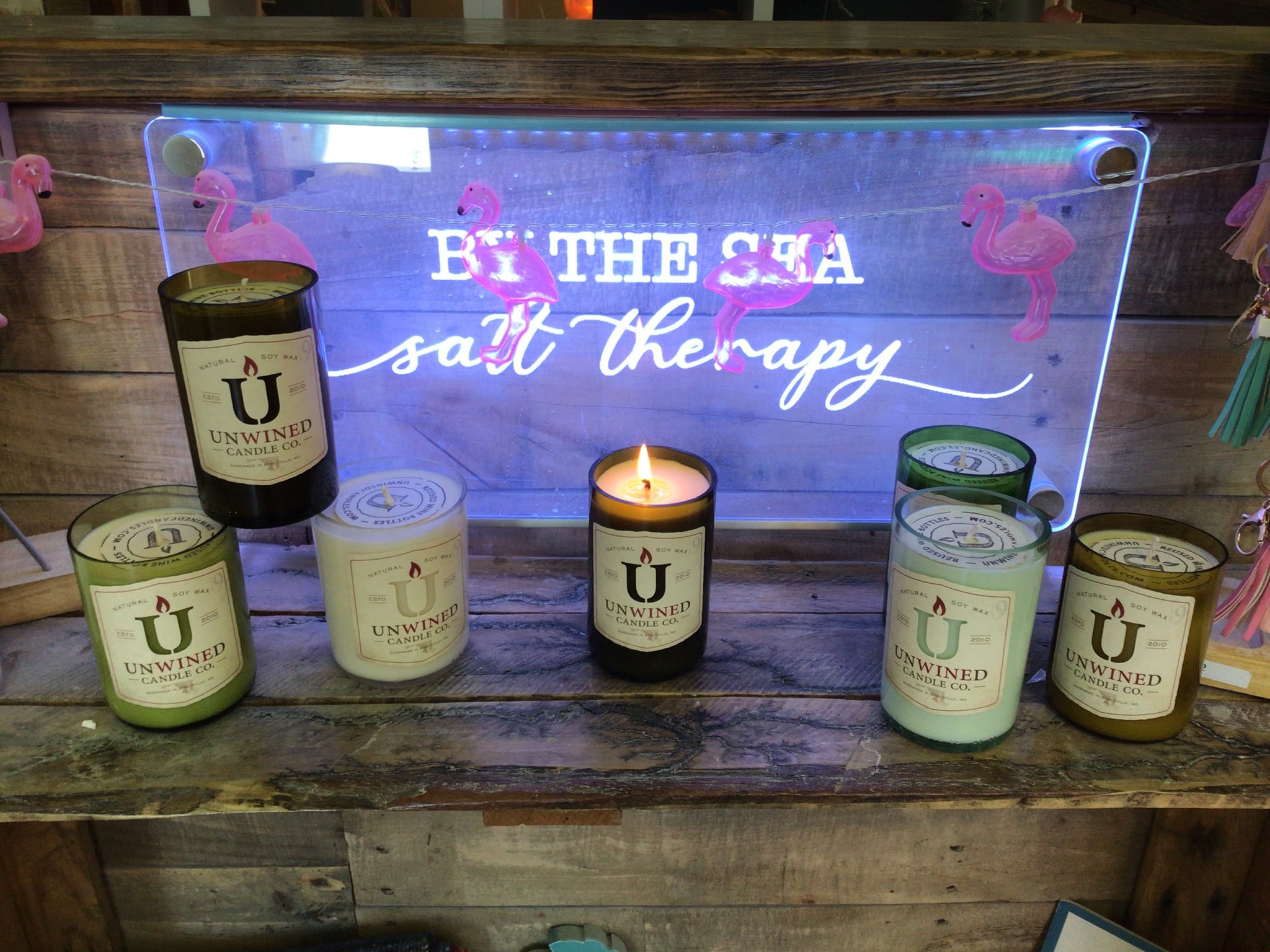 Signature collection of candles are housed in recycled wine bottles, made from all-natural soy wax, 100% cotton wick and a blend of essential and artisan fragrances. Eco-friendly and clean burning, these beautifully handcrafted candles are sure to please!